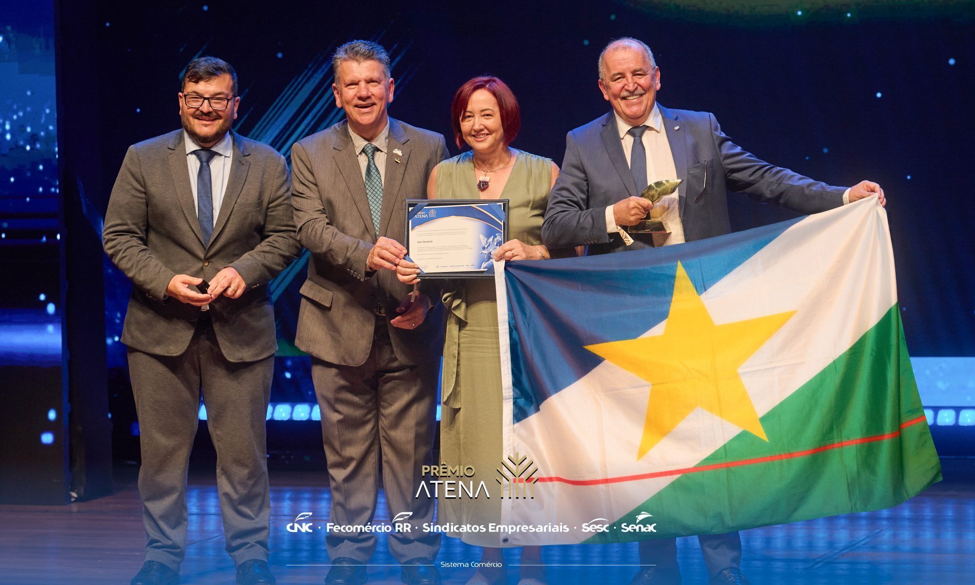 O Serviço Social do Comércio de Roraima (Sesc-RR) foi reconhecido no Prêmio Atena 2025, em uma noite de celebração realizada no Teatro da Escola Sesc de Ensino Médio (ESEM), no Rio de Janeiro. A premiação, promovida pela Confederação Nacional do Comércio de Bens, Serviços e Turismo (CNC), valoriza projetos inovadores, resultados expressivos e práticas de excelência desenvolvidas pelas Federações, Sindicatos e pelos Departamentos Regionais do Sesc e Senac de todo o Brasil.